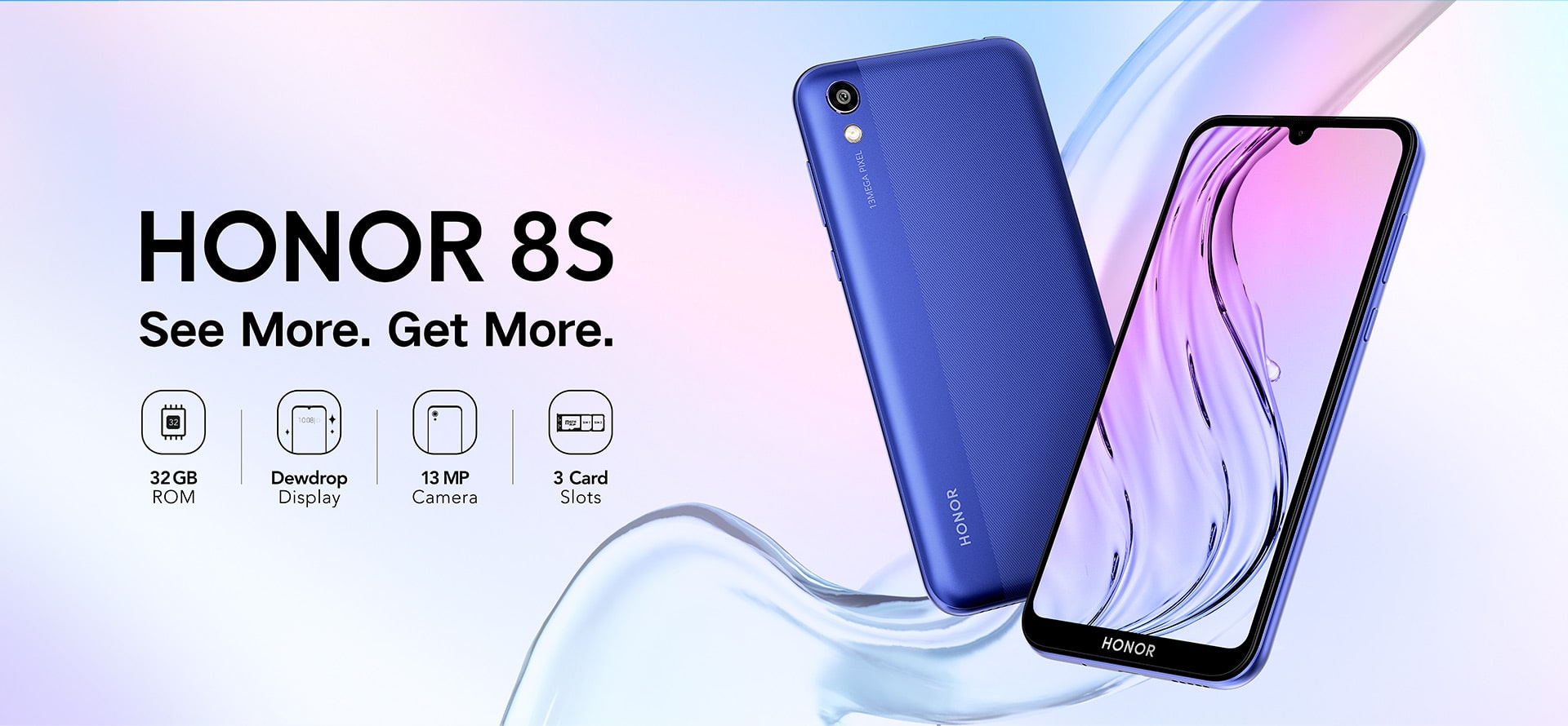 HONOR 8S vzdává hold klasickému designu chytrých telefonů využívajícímu dvojí texturu a jejich hladkým povrchům složeným z několika vrstev. Je to sice komunikační zařízení, ale na druhou stranu se jedná také o umělecké dílo. Tři moderní barevné varianty splňují různé estetické nároky uživatelů: černá, modrá a zlatá.
