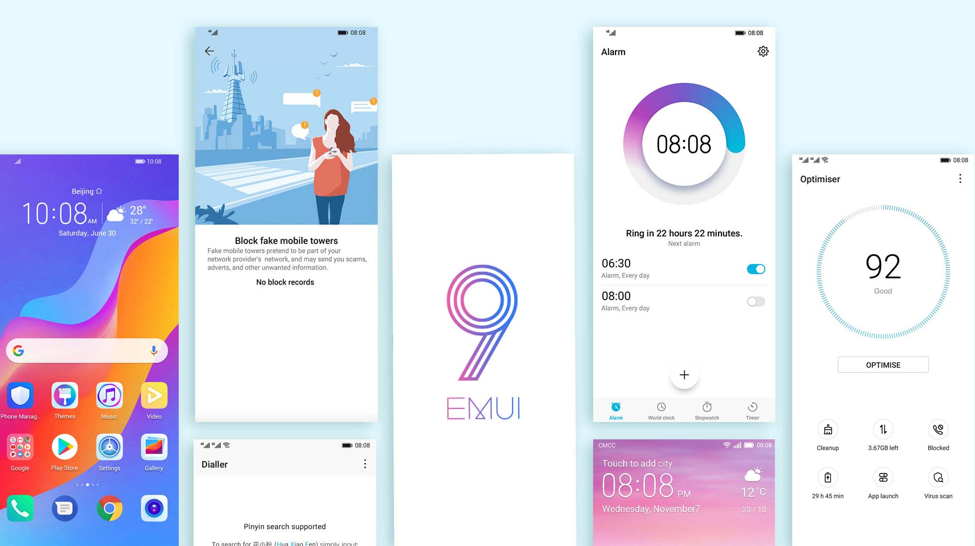 Optimalizovaný operační systém EMUI 9.0 je založen na nejnovějším systému Android 9. Algoritmy pro správu aplikací na pozadí jsou obohaceny o funkce umělé inteligence zajišťující bezproblémový provoz i po delším používání.