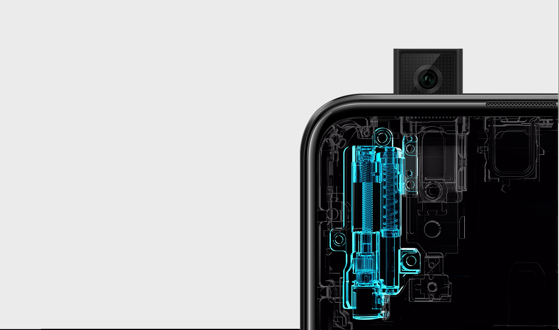 Při spuštění selfie režimu se vysune 16 Mpx fotoaparát, a to během sekundy a po vyfocení se automaticky zatáhne.