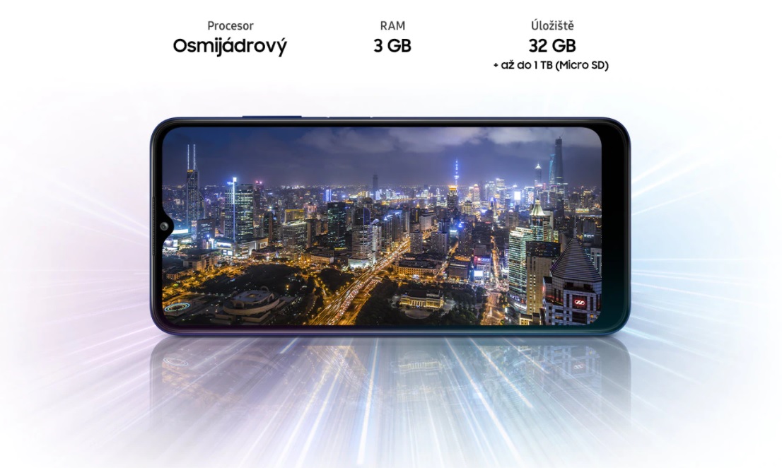 Galaxy A03s kombinuje výkon osmijádrového procesoru a až 3GB pro rychlý a efektivní provoz. Užijte si 32GB interní úložiště nebo jej ještě rozšiřte až o 1 TB pomocí microSD karty.