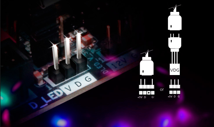 Konektor: 3kolíkový adresovatelný RGB konektor, 4-pinový adresovatelný RGB konektor
