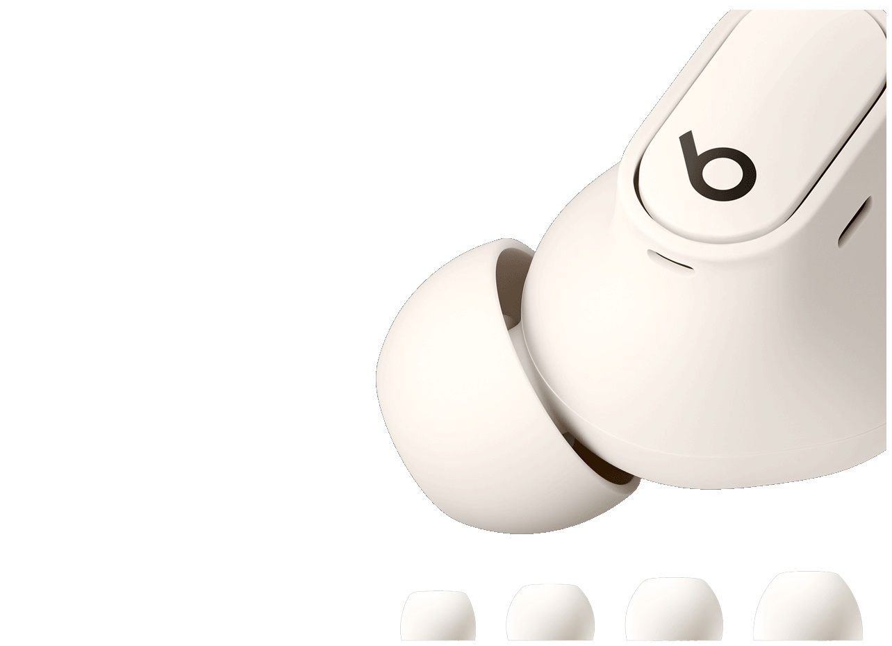 Sluchátka Beats Studio Buds+ se čtyřmi variantami nástavců do uší (XS, S, M a L), které se hodí pro širší škálu uší, vytvářejí pohodlné akustické těsnění pro nejlepší zážitek z poslechu a zajišťují, aby sluchátka zůstala na svém místě.