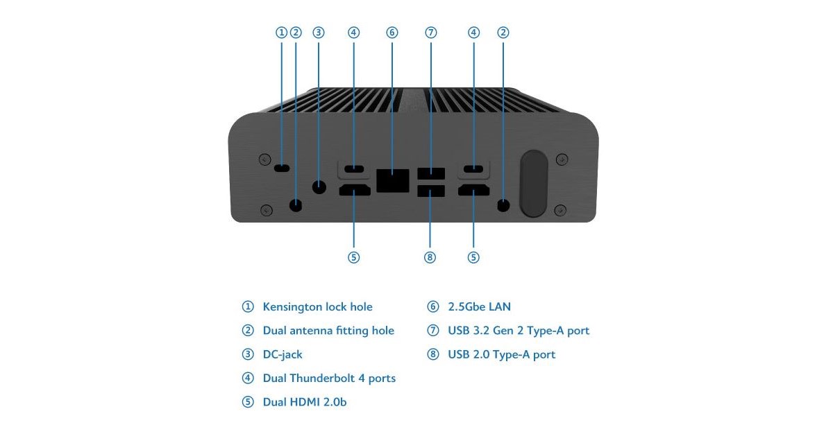Navrženo pro řadu Intel® NUC Pro včetně NUC 11 Pro (Tiger Canyon), NUC 12 Pro (Wall Street Canyon) a NUC 13 Pro (Arena Canyon) s tepelnou konstrukcí do 28 W. Podpora všech rozhraní*