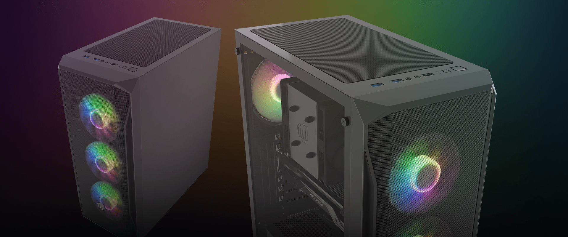 Podívejte se na Fury Shobo SH4F RGB - chytrou počítačovou skříň s účinným chlazením a RGB podsvícením. Skříň Shobo SH4F RGB je kompatibilní se základními deskami ATX a systémy vodního chlazení (AIO 360/280/240/140/120), je vybavena až 4 ventilátory RGB, síťovanou přední částí a ochranou proti prachu. Ať je světlo!