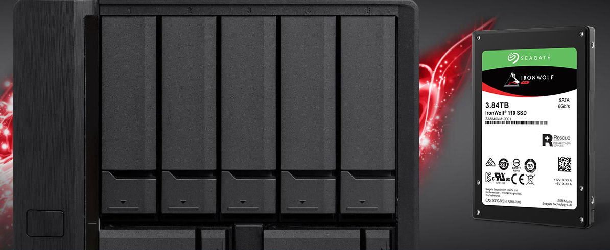Seagate® IronWolf® 110 SSD je konstruován pro NAS s kapacitou od 240 GB do 3,84 TB a s výkonem 24 × 7 pro práci s více uživateli.