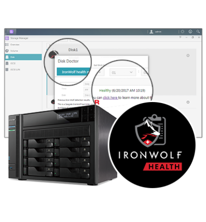 Když jsou tyto disky integrovány do kompatibilních systémů NAS, poskytují celkový nárůst spolehlivosti systému díky systému IronWolf Health Management (IHM).