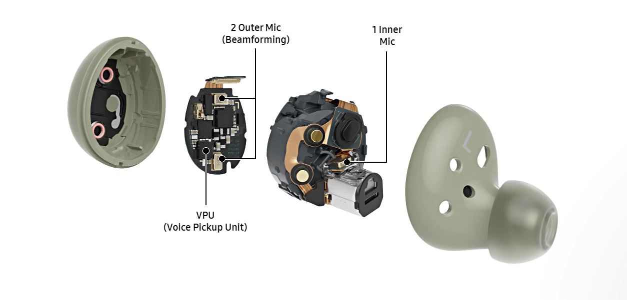 Užijte si silné, hluboké basy a čisté výšky díky dvoucestným dynamickým reproduktorům. Galaxy Buds2 vám přinášejí vyváženou zvukovou kvalitu, která obohatí každý moment vašeho poslechu. Jako byste byli součástí samotného zvuku.