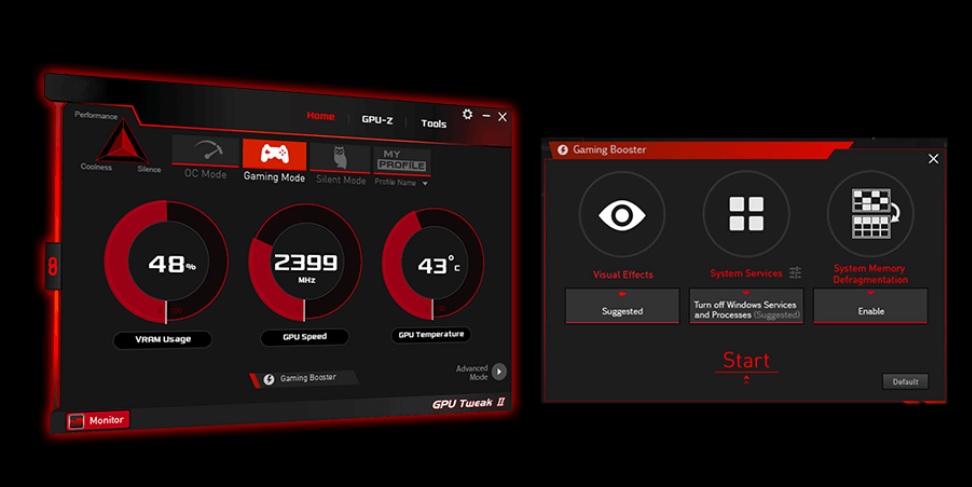 Nástroj ASUS GPU Tweak II posouvá ladění grafické karty na vyšší úroveň. Umožňuje upravovat kritické parametry včetně taktů jádra GPU, frekvence paměti a nastavení napětí s možností sledovat vše v reálném čase prostřednictvím přizpůsobitelného displeje na obrazovce. Součástí je také pokročilé ovládání ventilátorů a mnoho dalších funkcí, které vám pomohou vytěžit z vaší grafické karty maximum.