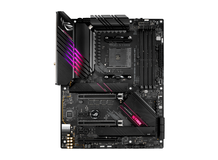 Základní deska ROG Strix B550-XE Gaming WIFI poskytuje robustní dodávku energie a komplexní chlazení, aby zvládla zapojení nejnovějších procesorů Ryzen. Podporuje také rychlejší paměť a superrychlé vysokokapacitní úložiště, které poskytuje vše, co potřebujete k sestavení počítače, který je připraven hrát ve velkých ligách.