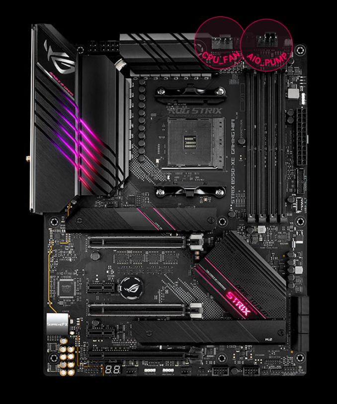 Řada ROG Strix B550 nabízí nejkomplexnější možnosti chlazení, které lze konfigurovat pomocí programu Fan Xpert 4 nebo UEFI BIOS.