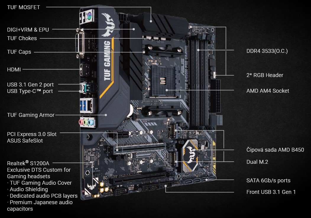 Produkty společnosti můžeme nalézt téměř ve všech odvětvích trhu s IT.Produkt ASUS TUF B450-PRO GAMING se nachází v kategorii AM4, výrobce ASUS
