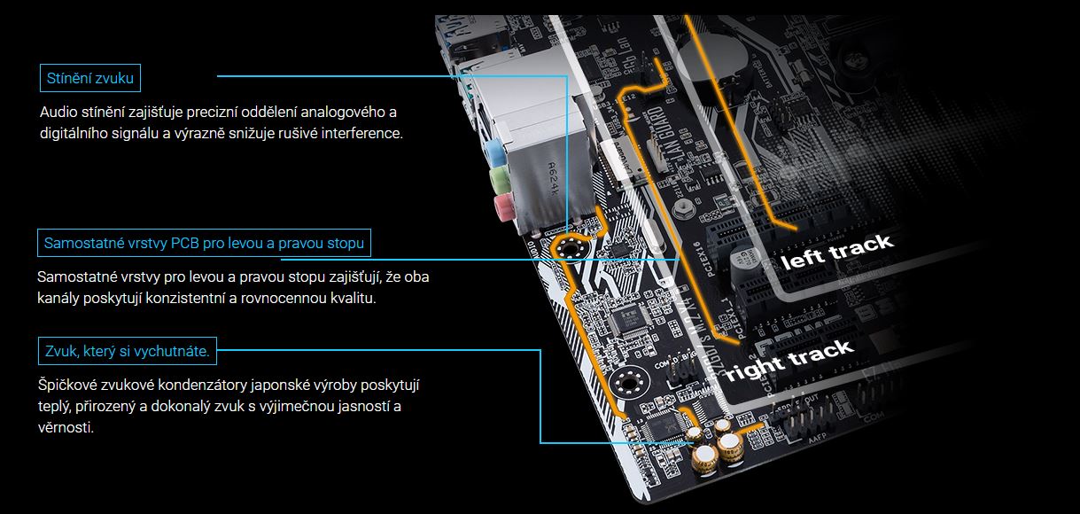 Zvuková karta: Realtek® ALC887 8-mi kanálový High Definition Audio CODEC