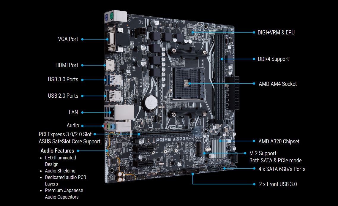 Produkty společnosti můžeme nalézt téměř ve všech odvětvích trhu s IT.Produkt ASUS PRIME A320M-K/ CSM/ AM4/ mATX se nachází v kategorii AM4, výrobce ASUS