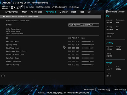 128 Mb Flash ROM, UEFI AMI BIOS, PnP,WfM2.0, SM BIOS 3.0, ACPI 6.1, Multi-language BIOS, ASUS EZ Flash 3, ASUS CrashFree BIOS 3, My Favorites, Last Modified log, F12 PrintScreen, ASUS DRAM SPD (Serial Presence Detect) memory information, F6 Qfan Control