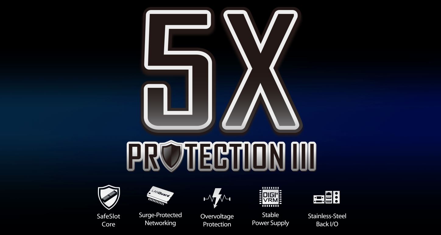 Exkluzivní konstrukce obvodů s integrovanými regulátory přepětí chrání vaši základní desku i čipovou sadu, porty a zvukové kodeky před přepětím a poškozením způsobeným neočekávanými napětím na vysoké úrovni z nestabilních nebo nekvalitních napájecích zdrojů.