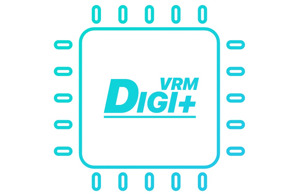 Modul napěťového regulátoru (VRM) Digi+ zajišťuje řízení poklesu napětí v reálném čase, automatické přepínání frekvence a nastavení účinnosti napájení. Umožňuje také jemné vyladění procesoru pro dosažení maximální stability a výkonu.