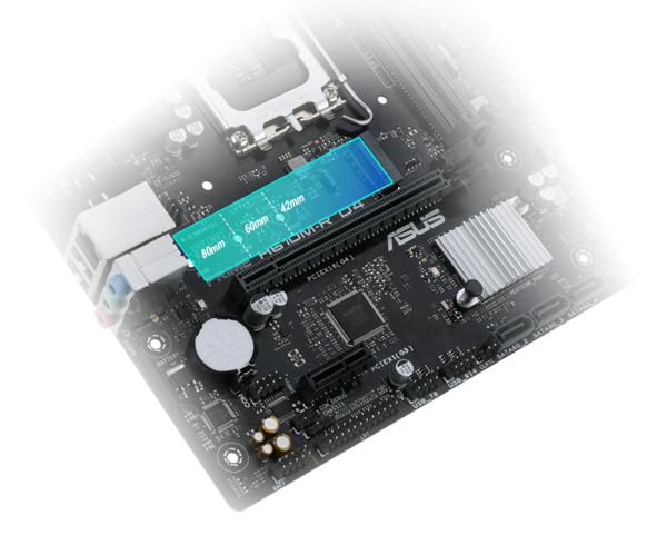 Základní deska Prime H610M-R D4 nabízí jeden slot M.2, který podporuje rychlost přenosu dat až 32 Gb/s prostřednictvím rozhraní PCIe 3.0, což umožňuje rychlejší spouštění systému a načítání disku s operačním systémem nebo disku s aplikacemi.