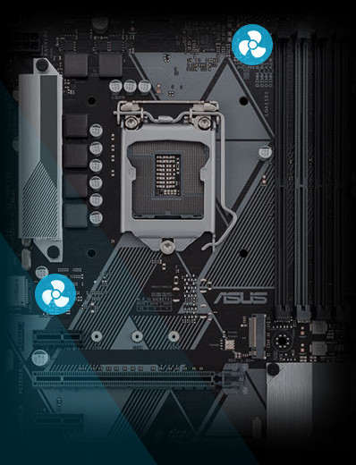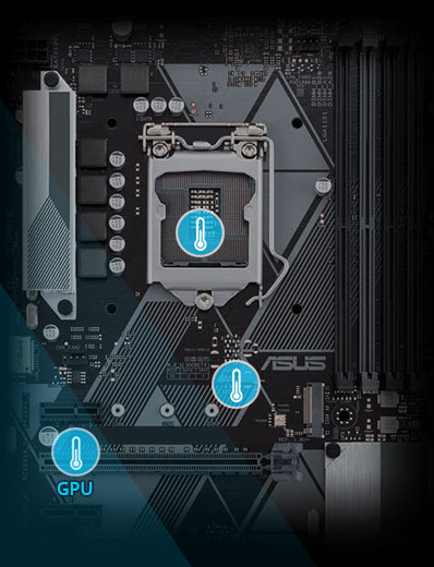 Každý header může být nastaven tak, aby monitoroval a reagoval až na tři teplotní senzory. Pomocí Fan Xpert můžete také přiřadit senzor monitorující teplotu podporovaných grafických karet ASUS, čímž je zajištěno optimální chlazení i při zatížení náročných na GPU nebo CPU.
