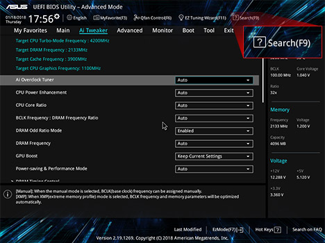 Když jste připraveni se hlouběji ponořit do nastavení, režim Advanced umožňuje plnou kontrolu nad každým aspektem základní desky — s integrovanou funkcí vyhledávání, která vám v mžiku umožní nalézt požadované nastavení.