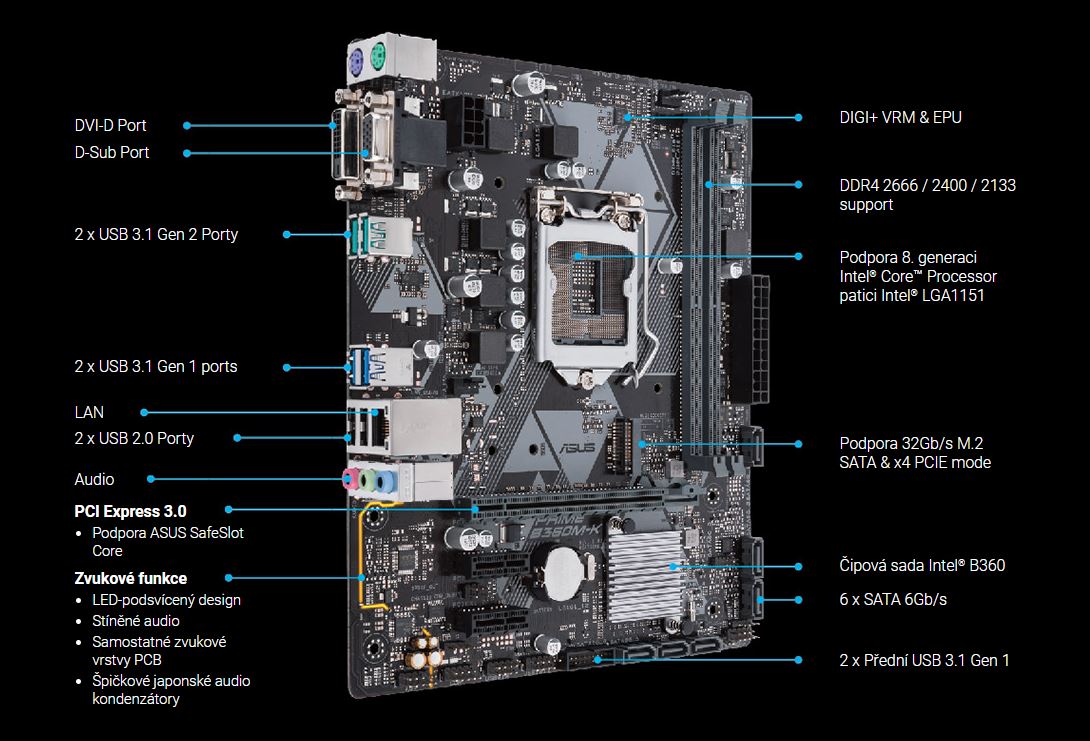 Více na stránkách https://www.asus.com/us/Motherboards/PRIME-B360M-K/specifications/