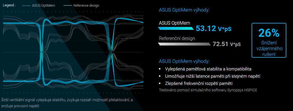 -ASUS OptiMem: Pečlivé směrování stop a tras pro zachování integrity signálu pro lepší přetaktování paměti.