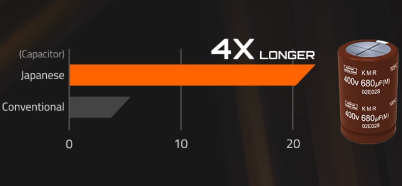 Coby hlavní kondenzátory slouží vysoce kvalitní japonské kondenzátory, které zajišťují efektivní výkon a delší životnost.