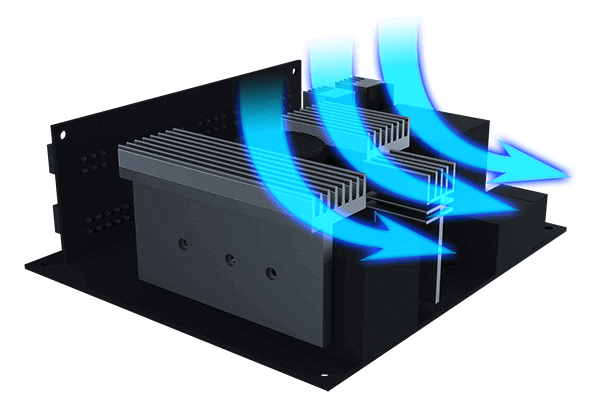 V porovnání se standardně řešeným chlazením jsme zvětšili chladič přibližně o 200 % nebo více a optimalizovali proudění vzduchu. Odvod tepla se zvýšil o více než 10 %, čímž se prodloužila životnost komponent.