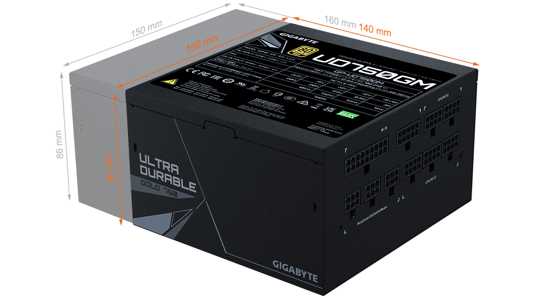 Díky špičkovým konstrukčním schopnostem inženýrů a jejich zkušenostem s technologiemi chlazení u různých hardwarových produktů a díky využití kvalitnějších materiálů se společnosti GIGABYTE podařilo snížit délku zdroje na úžasných 140 mm, takže jej lze snadno instalovat do jakékoli skříně bez toho, abyste byli omezeni nedostatkem místa.