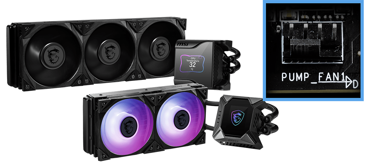 Navrženo pro podporu nejoblíbenějších řešení All-In-One a přizpůsobených řešení vodního chlazení na trhu. Speciální hlavička PIN vodního čerpadla podporuje až 3 A, což vám umožňuje plně ovládat otáčky vodního čerpadla. Jasně označená "keep-out-zone" umožňuje snadnou a bezpečnou instalaci a dokonalé uchycení.