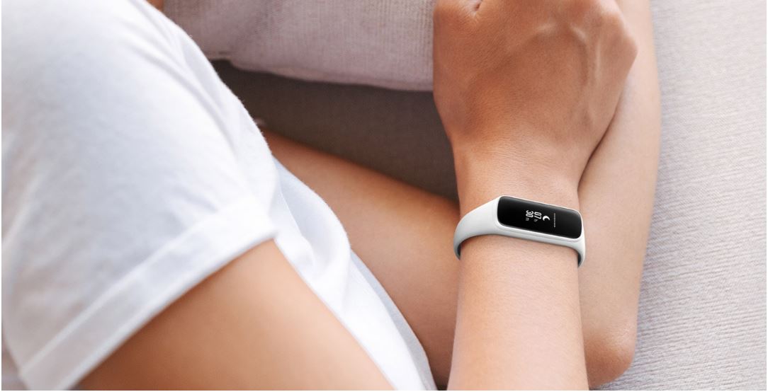Náramek Galaxy Fit E přichází ve štíhlém a ultralehkém designu s nádechem minimalismu, takže ho můžete nosit celý den a navíc ho na zápěstí ani neucítíte.