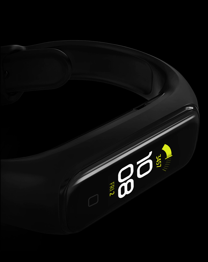 Galaxy Fit2 vám pomáhá udržovat rytmus a styl. Nádherné 3D sklo zdůrazňuje elegantní design a s rozměrným 1,1palcovým plnobarevným displejem AMOLED vám jediný rychlý pohled poskytne všechny potřebné informace.