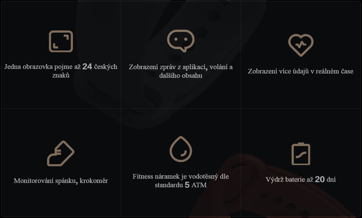Přesnější krokoměr, monitorování tepové frekvence, kvality spánku, připomínka při dlouhém sezení