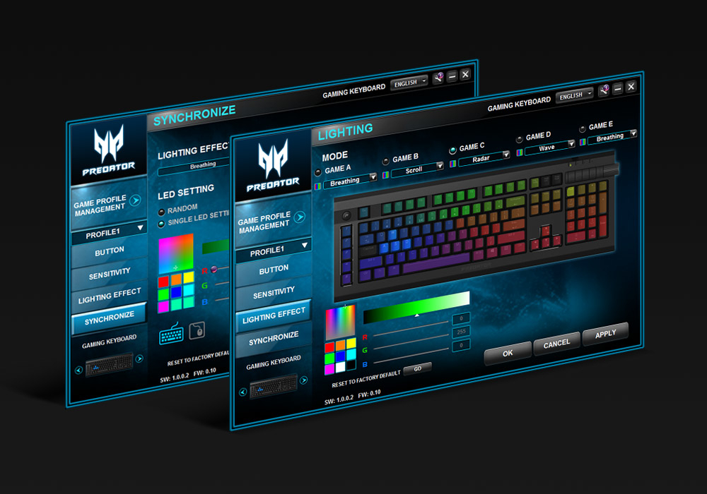 Získejte úplnou kontrolu nad osvětlením až do 16,8 milionu barev s možností přizpůsobení podsvícení každé klávesy. Poté experimentujte s 9 přednastavenými světelnými efekty nebo si vytvořte vlastní.