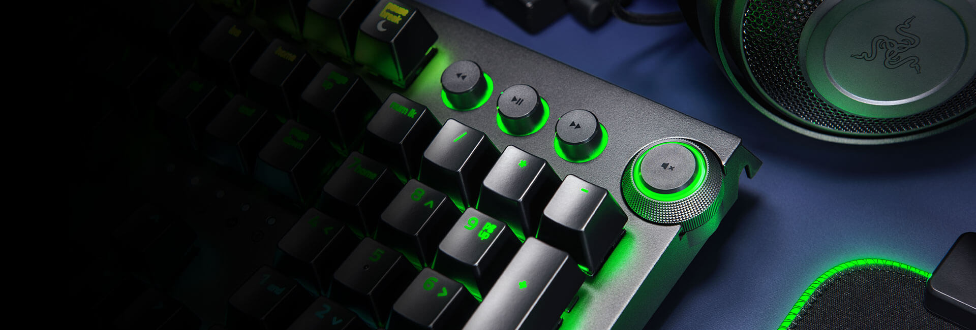 Razer BlackWidow Elite přichází nejen s novým vzhledem, ale také s novými rozšířenými ovládacími prvky ve formě multifunkčního digitálního vytáčení a mediálních kláves. Upravujte hlasitost, přepínejte hudbu a mnoho dalšího - vše plně přizpůsobitelné pomocí Razer Synapse 3.