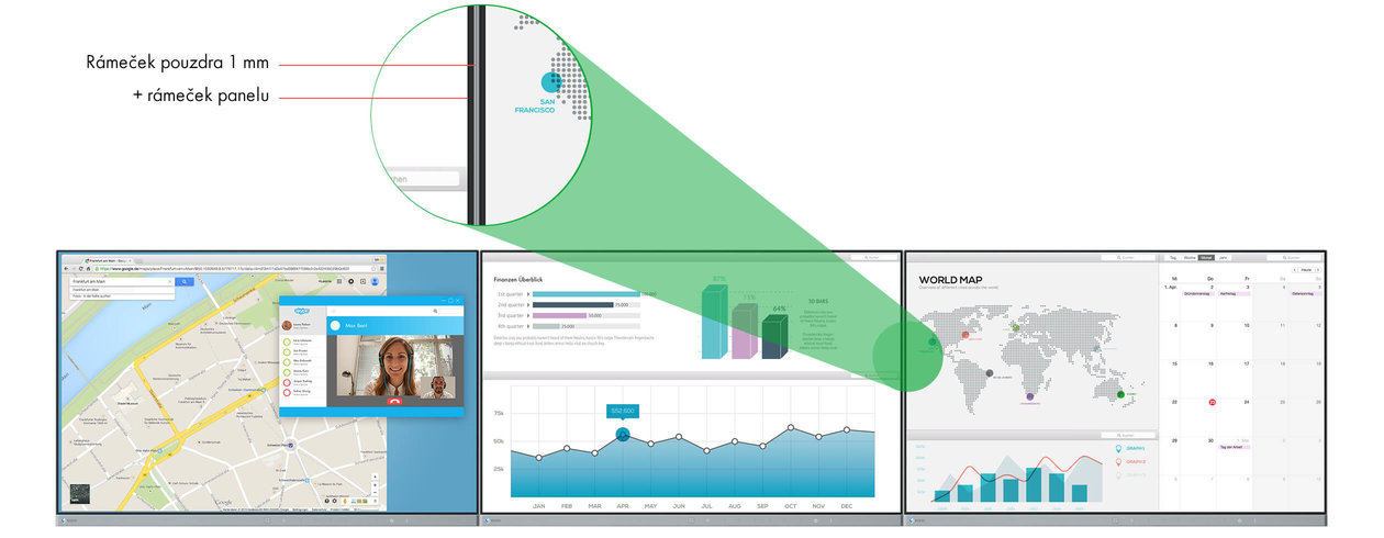 Maximální obraz díky minimalistické konstrukci: Díky velmi tenkému rámu pouzdra o šířce pouze 1 mm a šířce rámu panelu 4.3 mm monitor působí, jako by neměl vůbec žádný okraj. Je tak optimální volbou pro monitorové sestavy, například pro CAD, akciové trhy nebo jiné profesionální aplikace. Máte pocit, že pracujete na obrovském monitoru. Praktický: Síťový zdroj a vstupní konektory jsou optimálně zabudovány v přístroji.