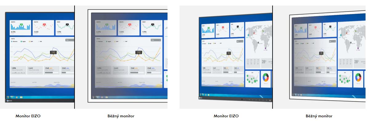 Všechny monitory FlexScan obdržíte včetně softwaru ScreenManager Pro, v němž lze barvy i funkce EcoView namísto nabídky na displeji nastavovat pomocí myši a klávesnice. Postačuje připojovací kabel nebo rozhraní USB. Pomocí funkce Multi-Monitor Matching lze sjednotit všechny monitory FlexScan připojené k témuž PC.