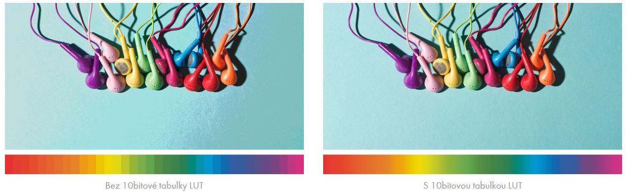 Interní 10bitová tabulka LUT skýtá značné přednosti v oblasti barevných odstínů: Přiřazování informací o barvě je výrazně přesnější než u běžných 8bitových tabulek LUT. Odstupňování barev je velmi přesné a poskytuje možnosti individuálního nastavení: Řízení barevné teploty umožňuje například nastavit úroveň bílé barvy v rozsahu od 4000 do 10 000 K v krocích o veliti 500 K. Dále lze samostatně nastavit sytost barev pro jednotlivé složky RGB.