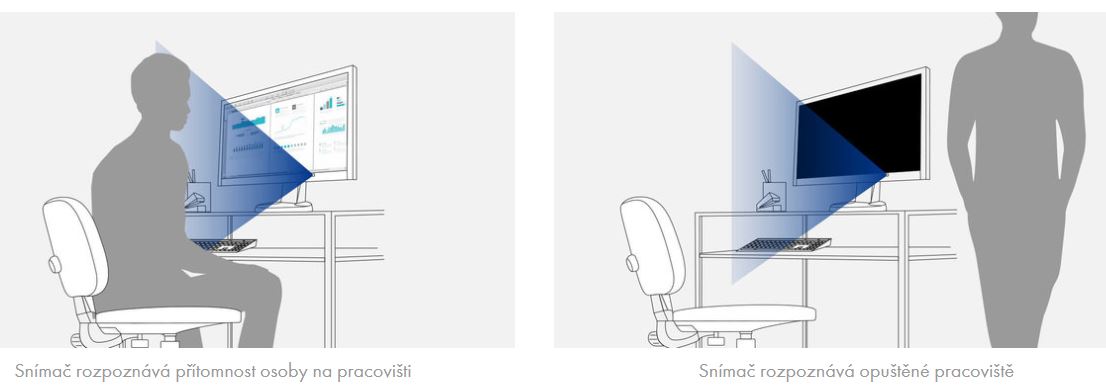 Snímač přítomnosti osoby (EcoView-Sense) umožňuje spořit elektřinu a snížit příslušné náklady. Princip činnosti: Sedíte-li před obrazovkou, je monitor v provozu. Opustíte-li své pracoviště, aktivuje se automaticky úsporný režim. Jakmile se vrátíte, monitor se znovu aktivuje – zcela automaticky prostřednictvím snímače pohybu.