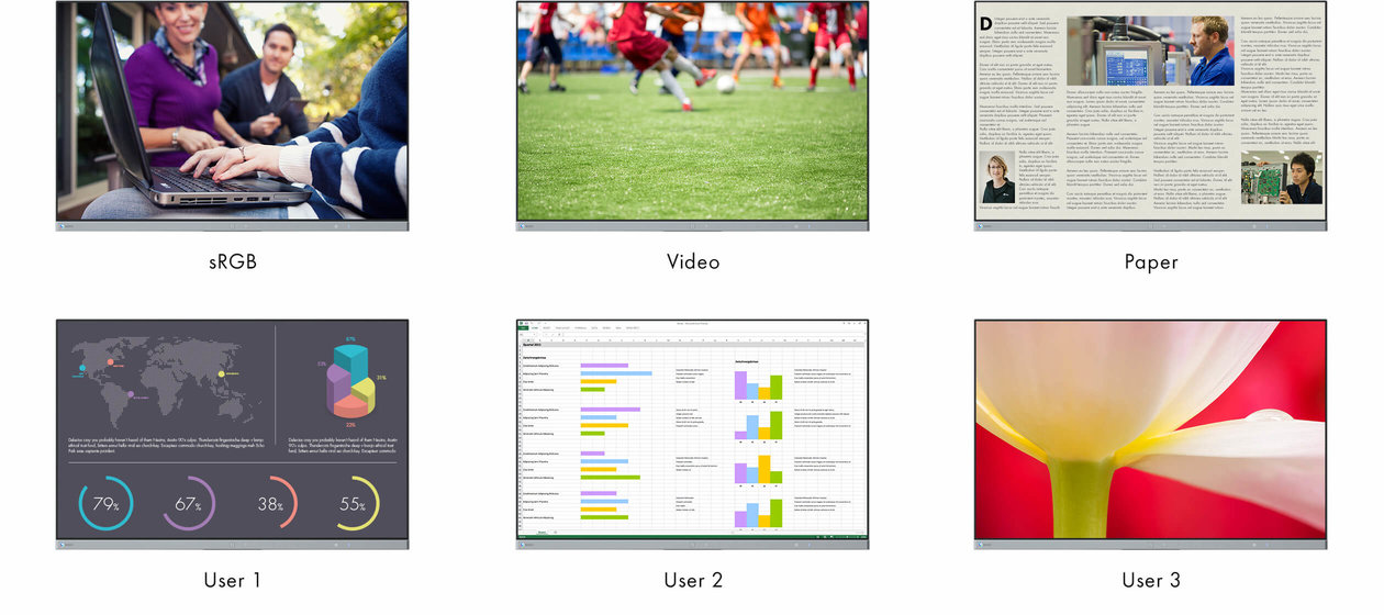 Režimy FineContrast vám usnadňují práci a sledování obrázků, textů a filmů. Pro nastavení barev je rozdíl, zda sledujete film, upravujete obrázek, brouzdáte po internetu, nebo píšete text. Prostým stisknutím tlačítka můžete použít příslušné standardní nastavení jasu, korekce gama a teploty barev. Díky přibalenému softwaru ScreenManager Pro lze každé aplikaci přiřadit určitý režim, který se samočinně aktivuje při spuštění příslušného programu. Příklad: Režim Paper simuluje příjemný kontrast knihy snížením podílu modrého světla. Tímto způsobem se šetří zrak a předchází se únavě očí.