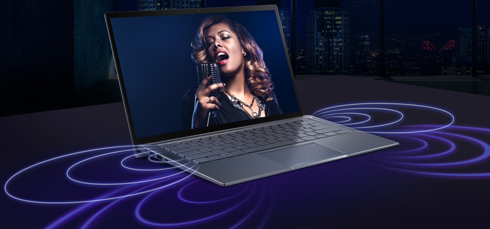 Pro vytvoření dokonalého čtyř-reproduktorového audio systému v ZenBook 14 spolupracoval tým ASUS Golden Ear s renomovanými odborníky na zvukové technologie pro domácnosti i automobily ze společnosti Harman Kardon. Dva basové reproduktory a dva vysokofrekvenční reproduktory poskytují hedvábný, ale jasný a silný zvuk v plném rozsahu, zatímco technologie inteligentního zesilovače zabraňuje zkreslení a poškození reproduktorů při vysokých hlasitostech. Společně s technologií ASUS SonicMaster – kombinací jemného doladění hardwaru a softwaru – jsou výsledky skutečně úžasné. ZenBook 14 vám přináší dokonalý zvukový zážitek!