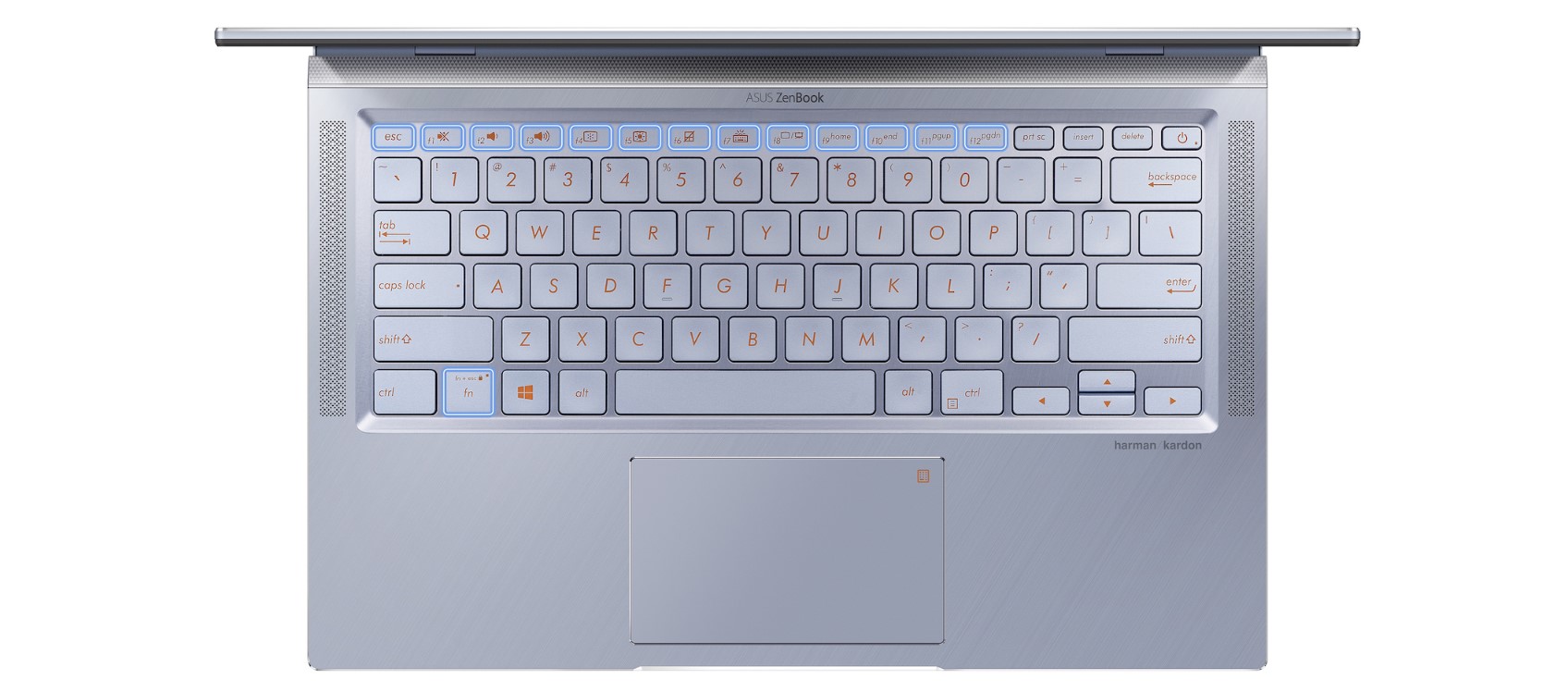 Kreativita. Styl. Inovace. To jsou vlastnosti, které charakterizují nový elegantní ZenBook 14. Vše, co je v tomto mistrovském díle, které s sebou můžete vzít kamkoli – vždyť se jedná o nejmenší 14-palcový notebook na světě – je navrženo tak, aby vám poskytl svobodu při objevování vašeho tvůrčího potenciálu, včetně jeho dech beroucího bezrámečkového NanoEdge displeje s poměrem obrazovky k tělu 86%. Můžete si vychutnávat nejen neuvěřitelný výkon, který nabízí výbava ukrytá v těle notebooku, ale za povšimnutí jistě stojí i náš smysl pro detail, který se odráží například v exkluzivním pantu ErgoLift, nebo volitelném typu touchpadu NumberPad. Zaručeně vás také zaujme nadčasová krása designu s jeho senzační povrchovou úpravou v sofistikované modré barvě (Utopia Blue) doplněné novými stříbrnými detaily. ZenBook 14 vás očekává: jste připraveni využít plný potenciál vaší kreativity?
