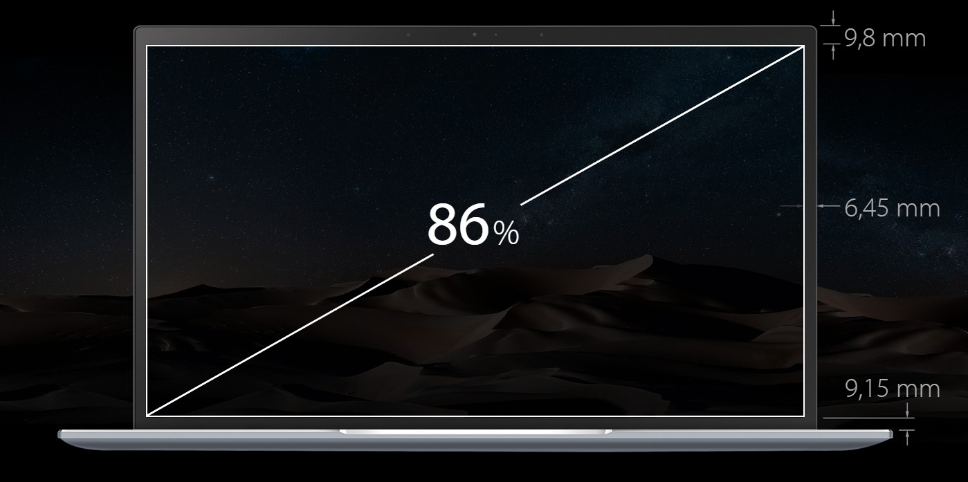Je stvořen tak, aby vám poskytoval největší plochu obrazovky při zachování nejmenšího fyzického prostoru. Nový NanoEdge displej, který se vyznačuje bezrámečkovým designem po všech čtyřech stranách panelu, na modelu ZenBook 14 je prostě úchvatný: každé zobrazení je ještě více pohlcující, s méně rušivými elementy pro vaše oči. Je vybaven také technologií širokého pozorovacího úhlu pro ostrý obraz i při pohledu z extrémních úhlů. A díky tomuto ultra kompaktnímu displeji je ZenBook 14 pouze veliti formátu A4 – tedy menší než mnoho 13-palcových notebooků.