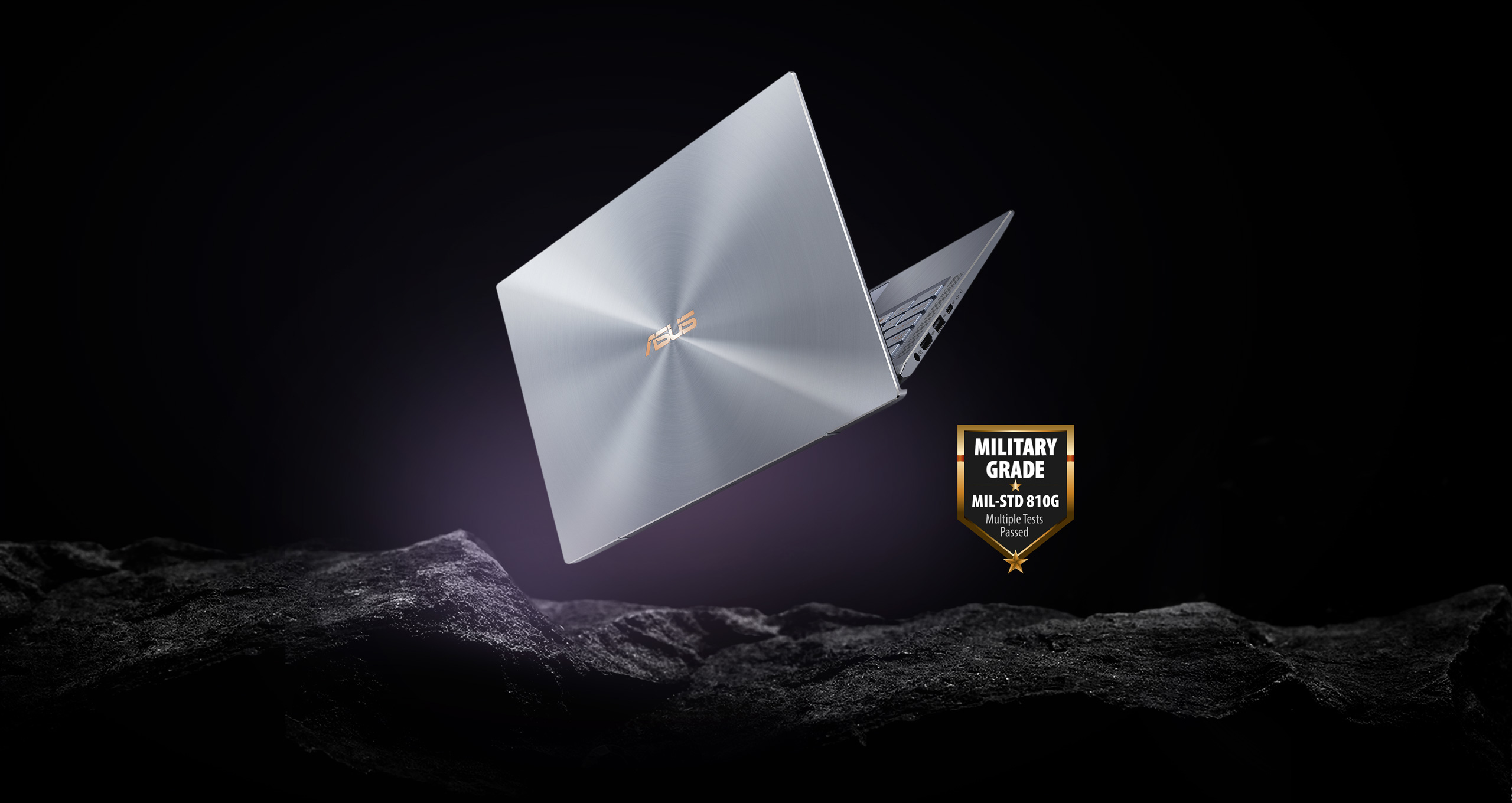 ZenBook 14 splňuje mimořádně náročný vojenský standard MIL-STD-810G pro spolehlivost a odolnost a prochází testovacími cykly, které zahrnují rozšířené testy pro provoz v drsných prostředích včetně extrémních nadmořských výšek, teplot a vlhti. Samozřejmě také prošel interními testy notebooků ASUS, které daleko přesahují standardy stanovené průmyslem.